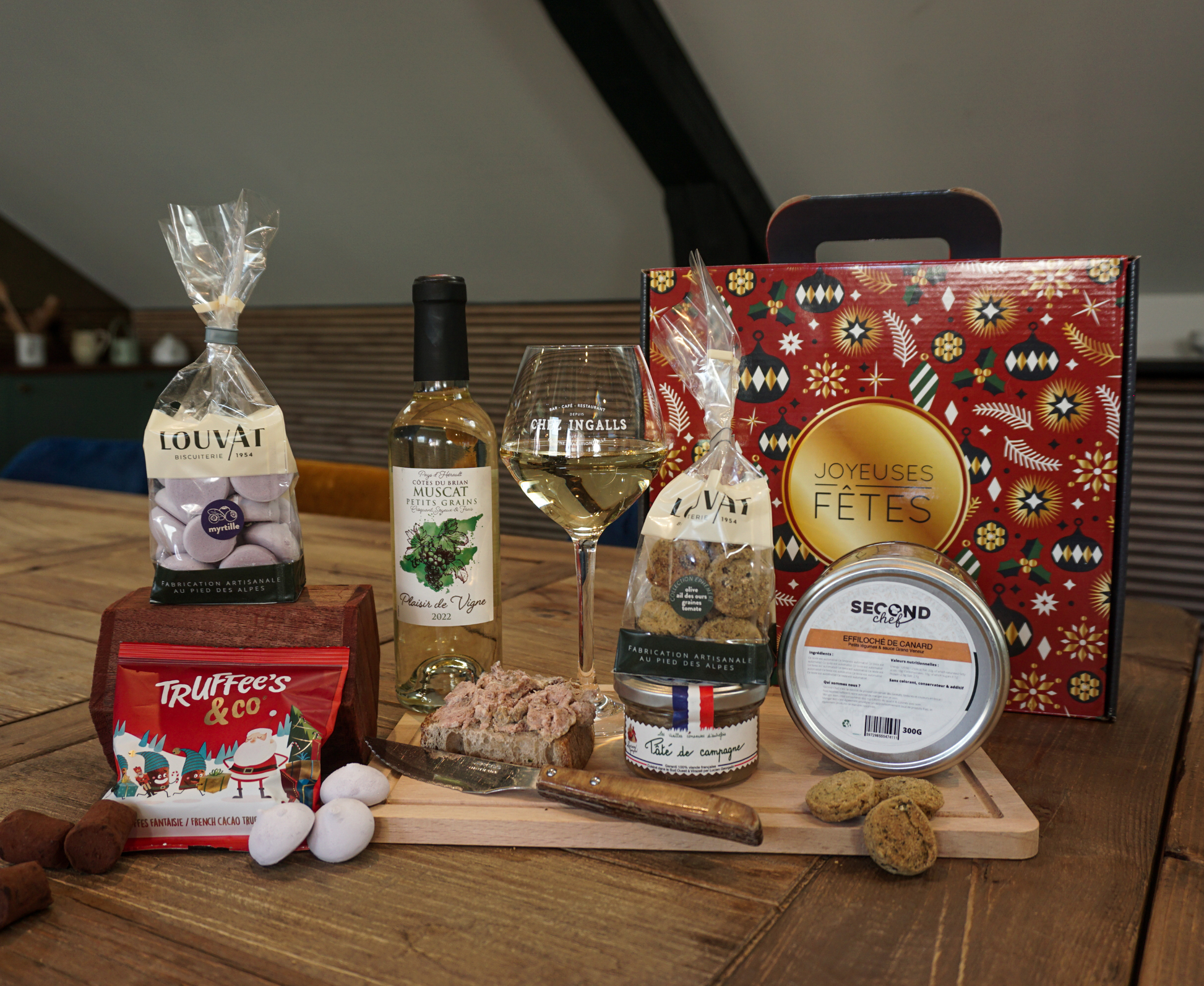 On commence fort avec des biscuits apéro à l’ail des ours et tomates séchées — croquants, parfumés, parfaits pour lancer les festivités. En duo gagnant : une terrine de campagne bien comme il faut, et un petit blanc moelleux pour faire glisser le tout en douceur.